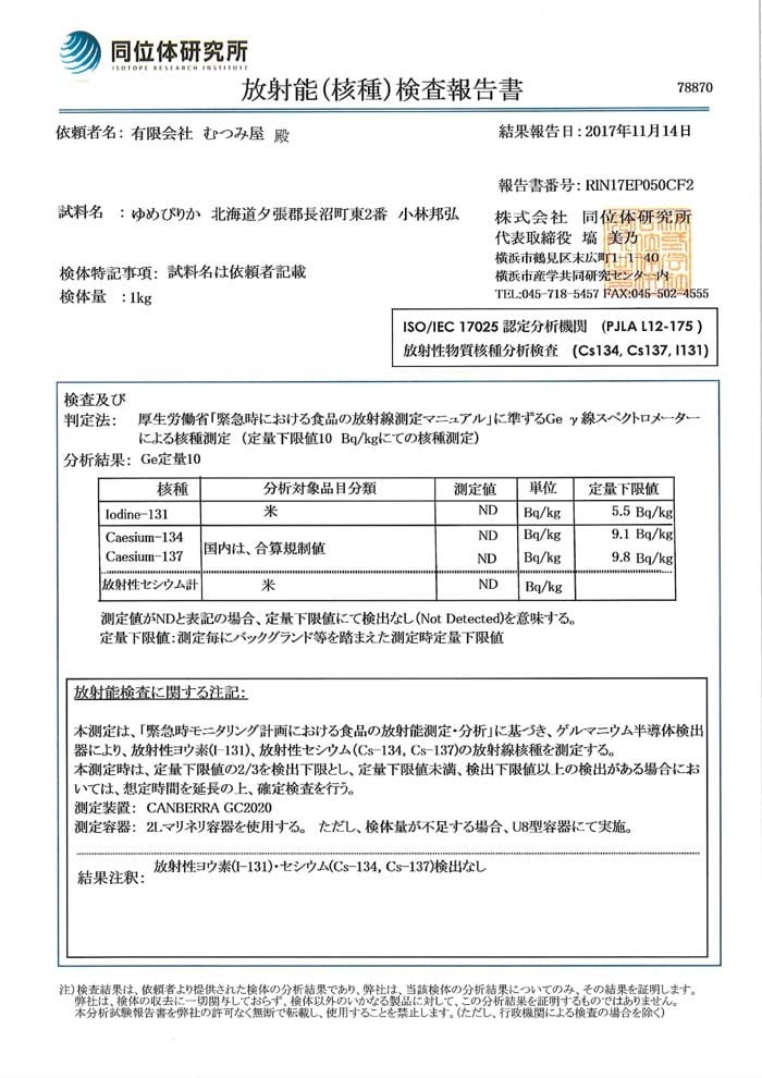 2021年まで7年間残留農薬検査済み・放射能検査済みです。安心してお召し上がりください。
